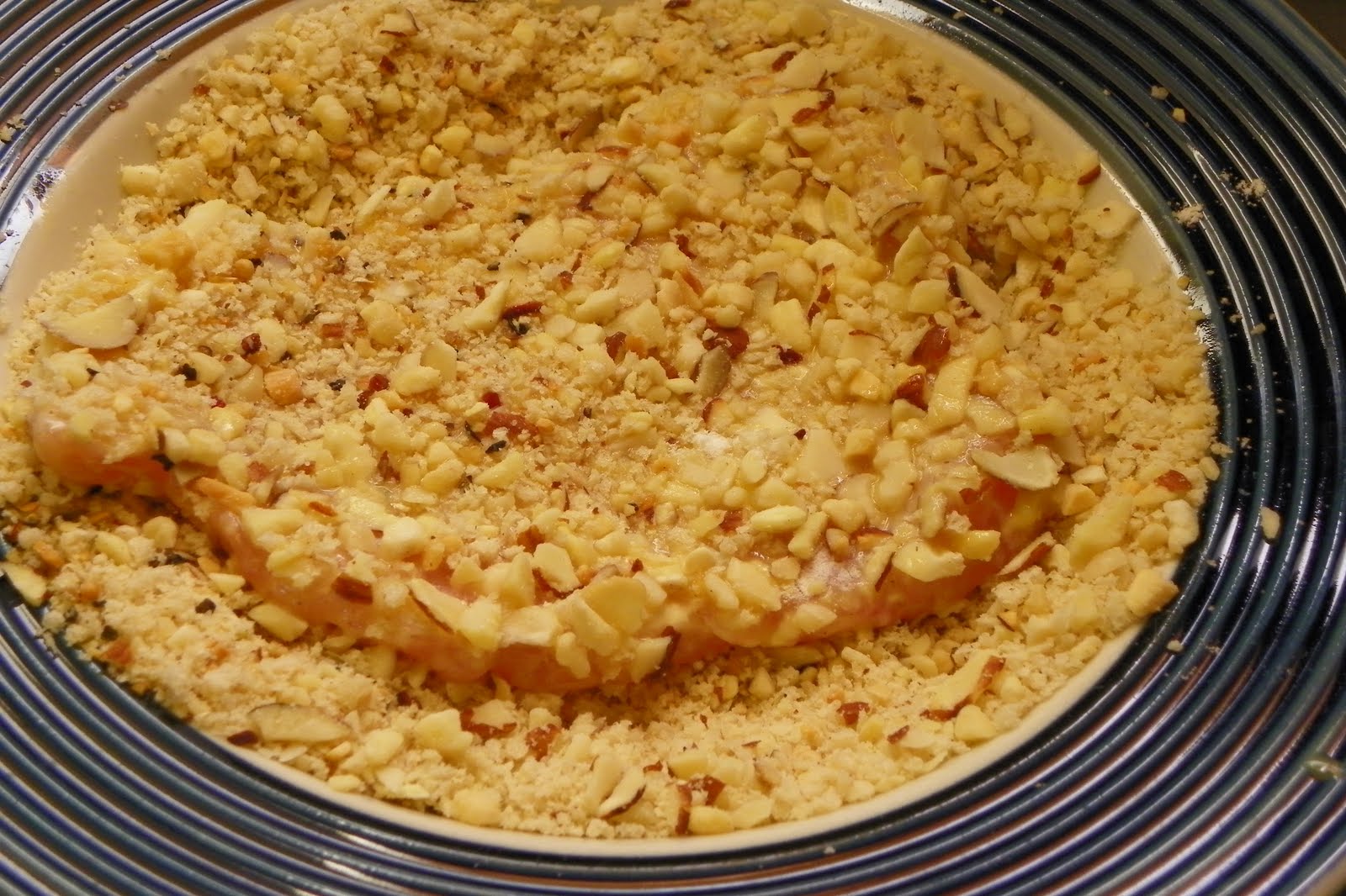 Mix the seasonings with the flour and place in a plate, aside the almond mixture.